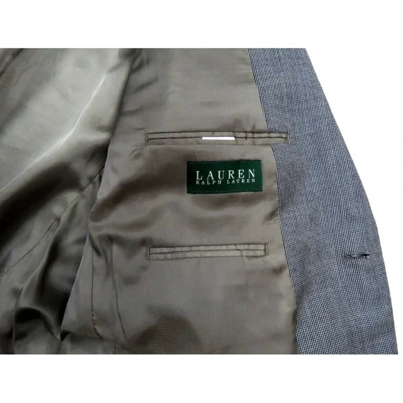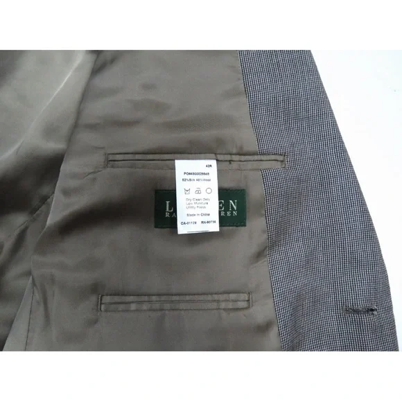 Description: NWOT Lauren Ralph Lauren LRL Wool Silk 2 Button Blazer Sport Coat Jacket -Two button closure -Two front flap pockets-Left chest pocket-Single vented back-Four button cuffsSize (Check Measurements): Mens 42 RColor: Tan and blackFabric: 52% silk and 48% woolCondition: New Without TagsItem#: 66228Measurements are in inchesArmpit to armpit: 22"Back bottom of the collar to the hem: 30 1/4"Shoulder to shoulder: 19 1/4"Shoulder seam to end of cuff: 23 3/4"BUYING VINTAGE·We do our best to thoroughly inspect all items for any visible imperfections i.e., rips, repairs, holes, stains, etc. and note as such.·Please note vintage sizes are not always comparable to today's sizing. Please refer to the measurements in the description for a more accurate depiction of the true size. If an issue should arrive, please contact us prior to leaving a negative as we strive for providing excellent customer service.Please compare your measurements to the measurements provided in the listing description to ensure a proper fit. 62904